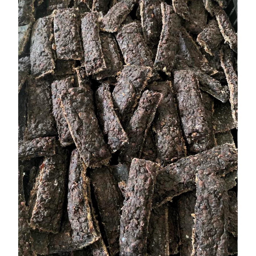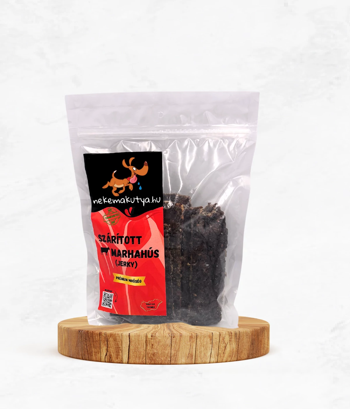 A szárított marhahús (jerky) prémium kutyacsemege, amely kizárólag húsrészekből készül – csontok, belsőségek hozzáadása nélkül. Magas fehérje és jó minőségű aminosav tartalmának köszönhetően hozzájárul az egészséges izomzat fenntartásához.