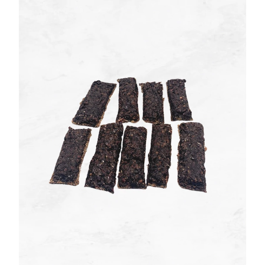 A szárított marhahús (jerky) egy magas fehérje tartalmú finomság, melyet kizárólag húsrészek felhasználásával készítünk, csontok- és belsőségek felhasználása nélkül. Ebben a kiszerelésben 250 gramm, 9-10  darab található.