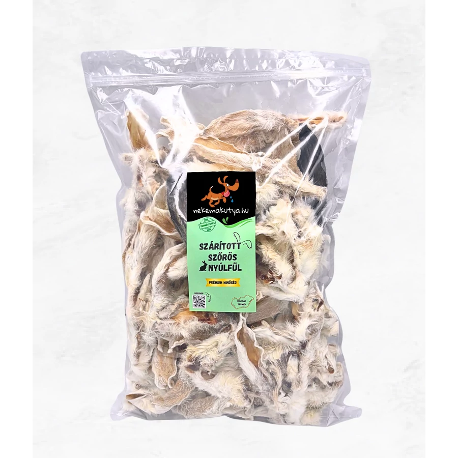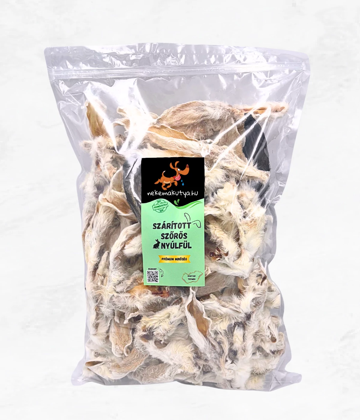 A nekemakutya szárított szőrös nyúlfül prémium kutyacsemege, tréning- és jutalomfalat, amely kifejezetten kutyáknak ajánlott.