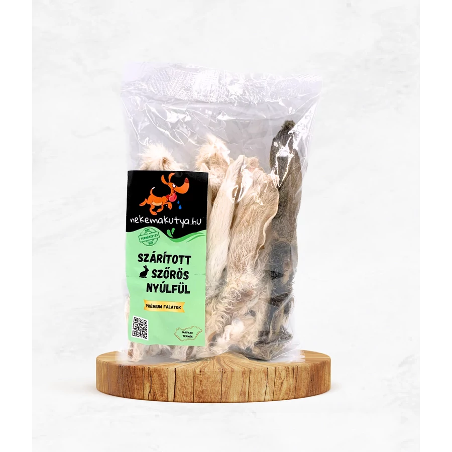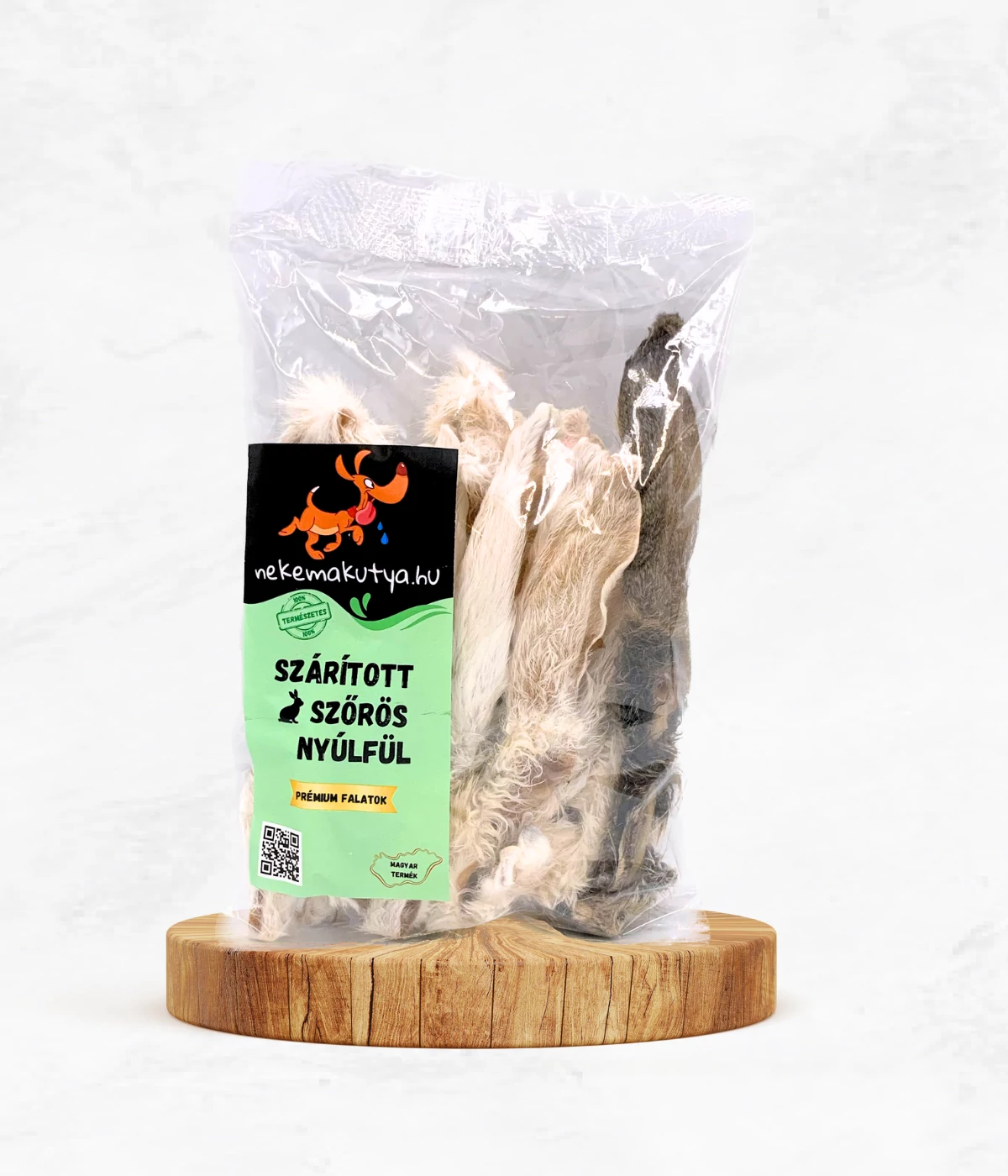 A nekemakutya szárított szőrös nyúlfül prémium kutyacsemege, tréning- és jutalomfalat, amely kifejezetten kutyáknak ajánlott.